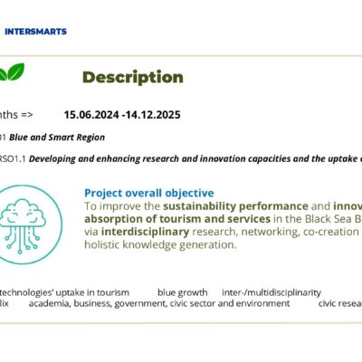 Suntem încântați să împărtășim momentele importante ale recentei Conferințe Științifice Internaționale „Paradigme Moderne în Dezvoltarea Economiei Naționale și Mondiale”, unde lideri globali de opinie s-au reunit pentru a discuta abordări inovatoare privind dezvoltarea economică.Un moment deosebit al conferinței a fost participarea doamnei Tzvetalina Genova-Petrova de la Varna University of Management, Bulgaria, care a reprezentat cu mândrie Proiectul BSB00332: INTERSMARTS – Soluții Interdisciplinare pentru Turism Inteligent și Durabil și Servicii pentru Creșterea Albastră în Bazinul Mării Negre.În cadrul prezentării sale, Tzvetalina a subliniat importanța critică a turismului durabil ca pilon al creșterii albastre, evidențiind cum acesta poate sprijini dezvoltarea economică, protejând în același timp ecosistemele marine și de coastă fragile din Bazinul Mării Negre. De asemenea, ea a abordat provocările unice cu care se confruntă sectorul turistic din regiune, inclusiv amenințările de mediu, dezvoltarea inegală și necesitatea unei colaborări mai eficiente între părți interesate.Pentru a răspunde acestor provocări, proiectul INTERSMARTS adoptă o abordare interdisciplinară, combinând cercetarea, crearea de rețele și co-creația pentru a promova soluții inteligente și durabile, adaptate nevoilor specifice ale Bazinului Mării Negre. Proiectul pune accent pe necesitatea de a poziționa turismul ca un sector bazat pe cunoaștere, deblocând potențialul acestuia pentru sustenabilitate și inovare.