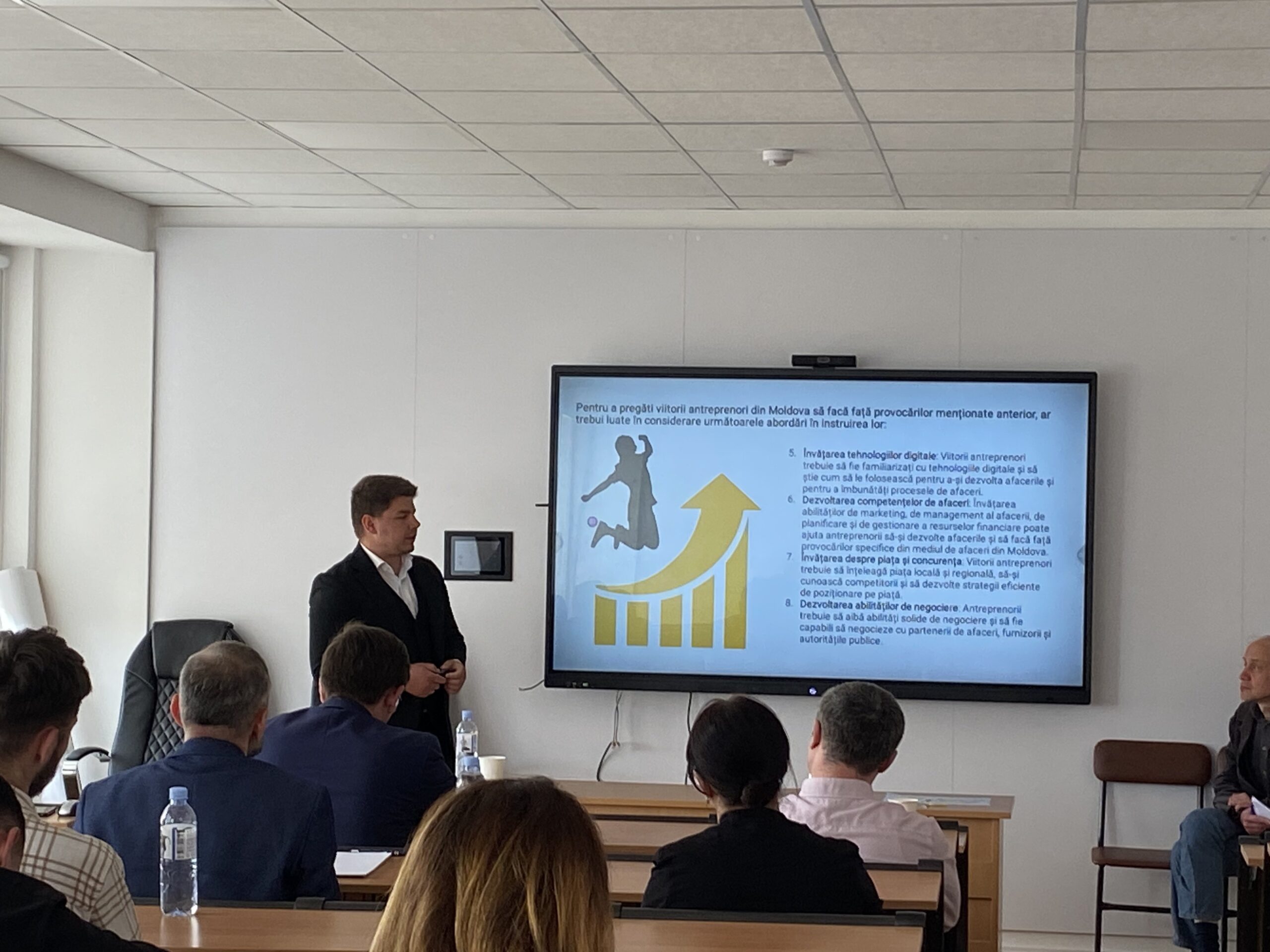 Un moment central al evenimentului au servit discuțiile directe, de tip “față în față”, cu reprezentanții mediului de afaceri – Vasile Turcu, manager, BAR „Practic Asig” SRL; Anastasia RUSU, întreprinzător, „ArBiTech” SRL; Ina GRIZA, director, Centrul Metodic de Instruire din cadrul Ministerului Agriculturii și Industriei Alimentare din Republica Moldova; Cristian Mîță, întreprinzător, „Crunid-Cristi” SRL; Iuliana Drăgălin, ONG „Asociația Consultanților în Afaceri și Management” (ACAM) din Republica Moldova; Veaceslav Nanu, vice-director, „Hotel Dacia” SRL; Liudmila BOTNARI, întreprinzător, „Autogrup Expres” SRL; Ion SÎMBOTEANU, avocat, „Cabinetul de Avocați Ion Sîmboteanu”; Vitalie TOMA, director, Asociația Patronală „Moldcontrol” și și Aurel UȘURELU, student, anul II, specialitatea „Business și Administrare”, „AurTransGroup” SRL, întreprinzător.