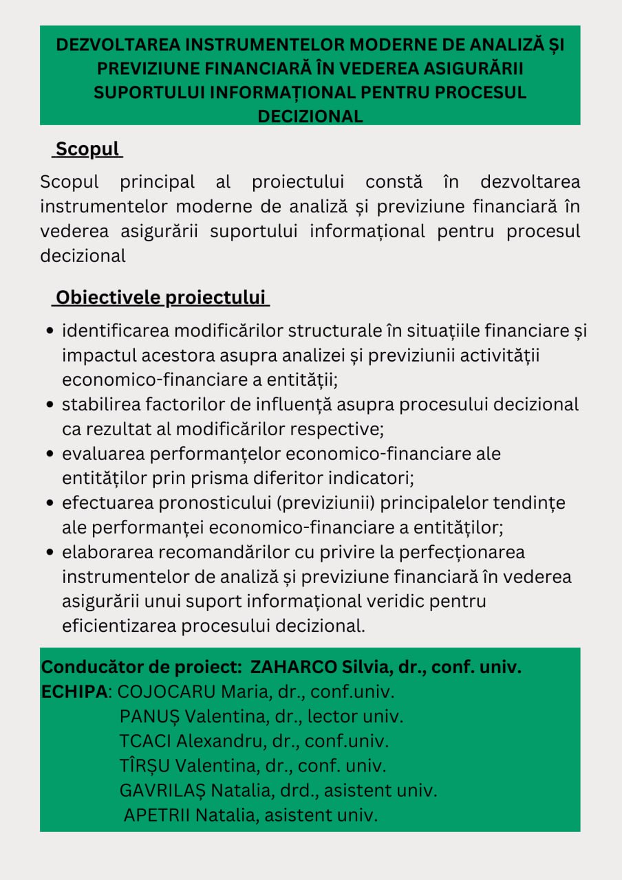 RAPORT ȘTIINȚIFIC FINAL 2022-2023: DEZVOLTAREA INSTRUMENTELOR MODERNE DE ANALIZĂ ȘI PREVIZIUNE FINANCIARĂ ÎN VEDEREA ASIGURĂRII SUPORTULUI INFORMAȚIONAL PENTRU PROCESUL DECIZIONAL