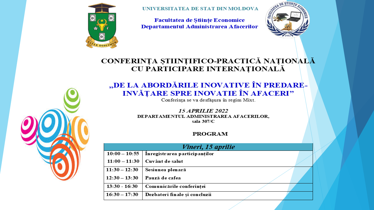 Conferința științifico-practică națională cu participare internațională: “De la abordările inovative în predare-învățare spre inovație în afaceri”