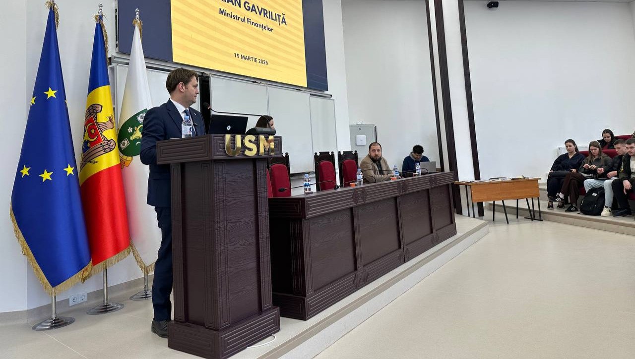 Întâlnirea publică organizată la data de 19 martie 2026, cu participarea domnului Andrian Gavriliță, Ministrul Finanțelor, a oferit studenților și cadrelor didactice o oportunitate valoroasă de dialog direct cu reprezentanții autorităților publice. La eveniment au participat studenții ciclului I, specialitățile Finanțe și bănci, Contabilitate și Business și administrare.
