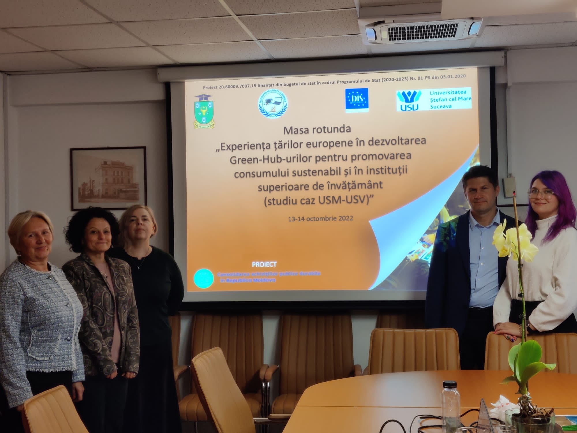 În perioada 13-14 Octombrie 2022 în cadrul Proiectului 20.80009.7007.15 finanțat din bugetul de stat în cadrul Programului de Stat (2020-2023) Nr. 81-PS din 03.01.2020, are loc Masa rotundă „Experiența țărilor europene în dezvoltarea Green-Hub-urilor pentru promovarea consumului sustenabil și în instituții superioare de învățământ (studiu caz USM-USV)”, organizată în cadrul Centrului de Studii Europene din cadrul Universității Ștefan cel Mare din Suceava, Centrul de Studii Europene-Facultatea de Economie, Administrație și Afaceri.