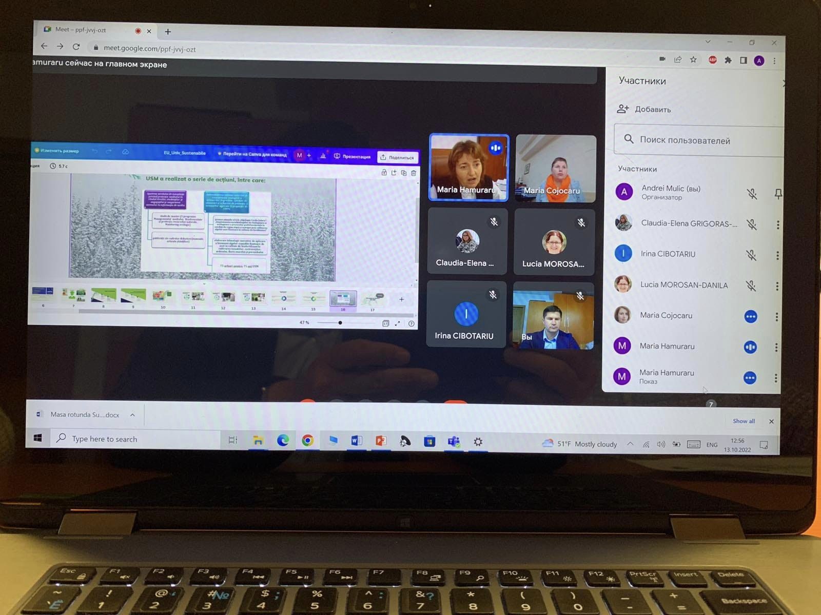 Comunicări în cadrul evenimentului: Ulian Galina, Dr., hab., prof univ., Cojocaru Maria, Dr., conf., univ. – prezentarea rezultatelor Proiectului „Consolidarea achiziţiilor publice durabile în Republica Moldova”, Mulic Andrei, Dr., conf., univ., Ulian Ecaterina, Scoala Doctorală de Științe Economice a USM – „Elaborarea conceptului Green-Hub-ului la USM prin prisma experienței Uniunii Europene”, Hamuraru Maria, Dr., conf., univ., Balmuș Mihaela, Buzdugan Adriana, Dr., conf., univ. – „Promovarea consumului sustenabil în universități”, Ulian Galina, Dr., hab., prof univ., Cojocaru Maria, Dr., conf., univ. – „Experiență țărilor europene privind Green-Hub”.