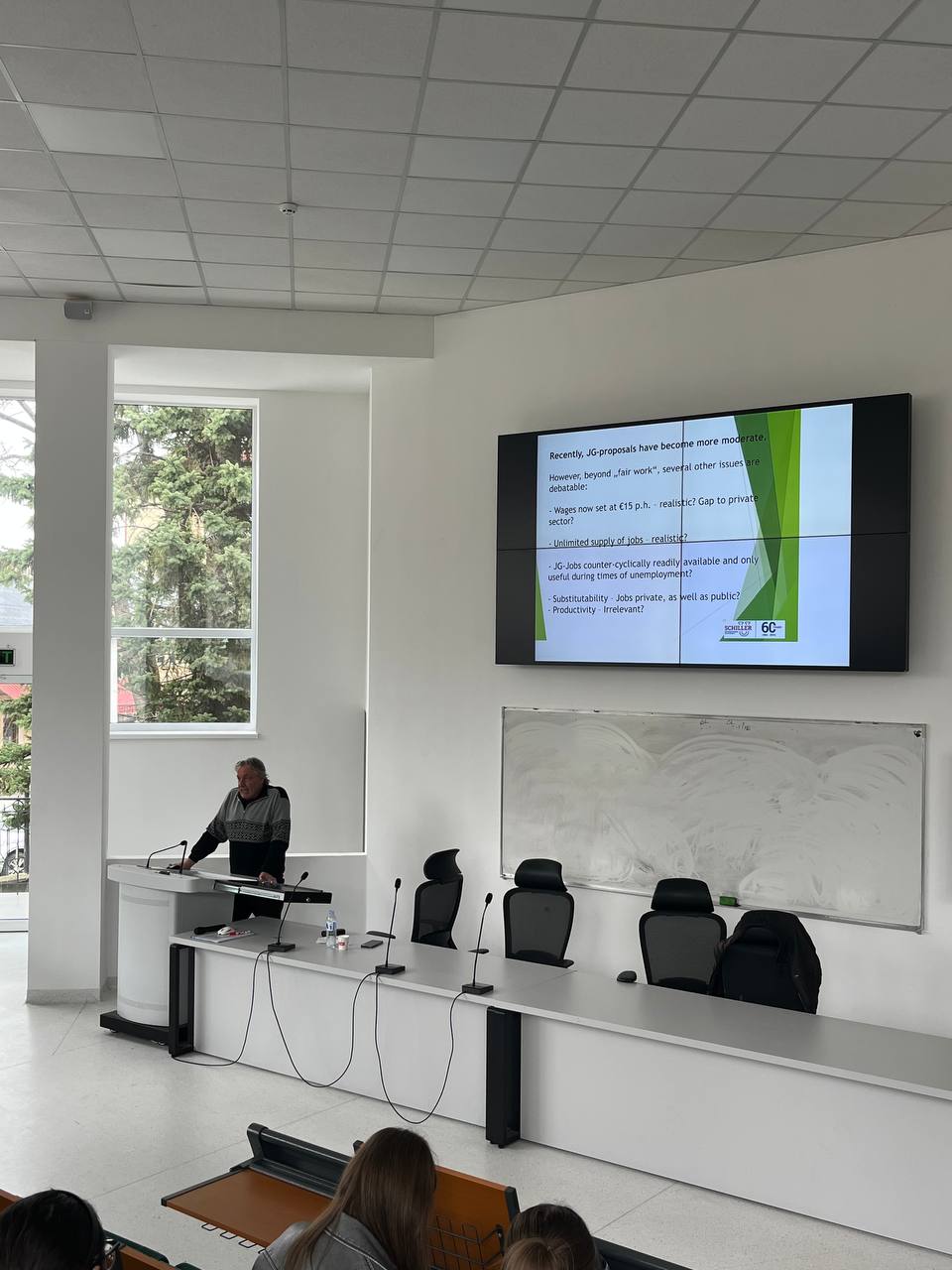 Pe data de 2 aprilie 2026, Facultatea de Științe Economice a Universității de Stat din Moldova a găzduit prelegerea academică susținută de Dr. Hubert Hieke (Schiller International University), cu tema „Job Guarantee and Minimum Wage – A solution to Unemployment and Poverty?”